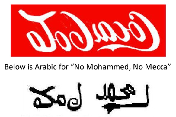 So, “HELL in 2012” eh? Those 3 red, white and blue “O”s are without doubt highly sophisticated and purposely created graphics. Reptilian eyes maybe? And it gets weirder with the pop splashing out of the glass that looks like horns. And what in (or out) of the world is in the glass when flipped upside down?