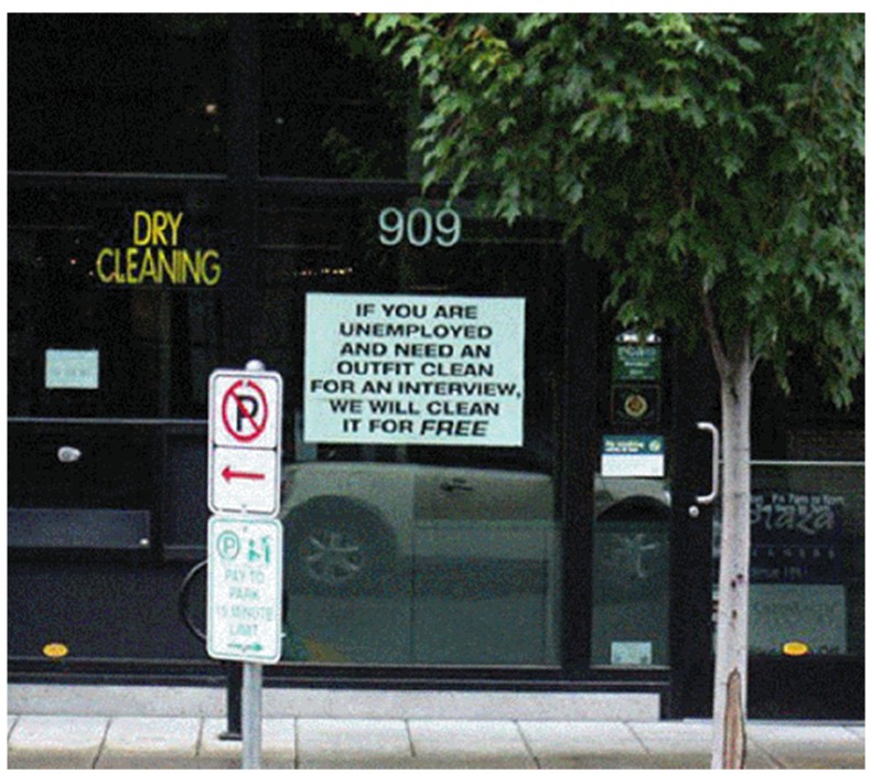 IF YOU ARE UNEMPLOYED AND NEED AN OUTFIT CLEAN FOR AN INTERVIEW, WE WILL CLEAN IT FOR FREE